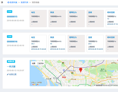 传感量类型自定义设置。实时数据一目了然,历史数据分曲线与列表展示。地理位置信息精确展示项目配置情况。
